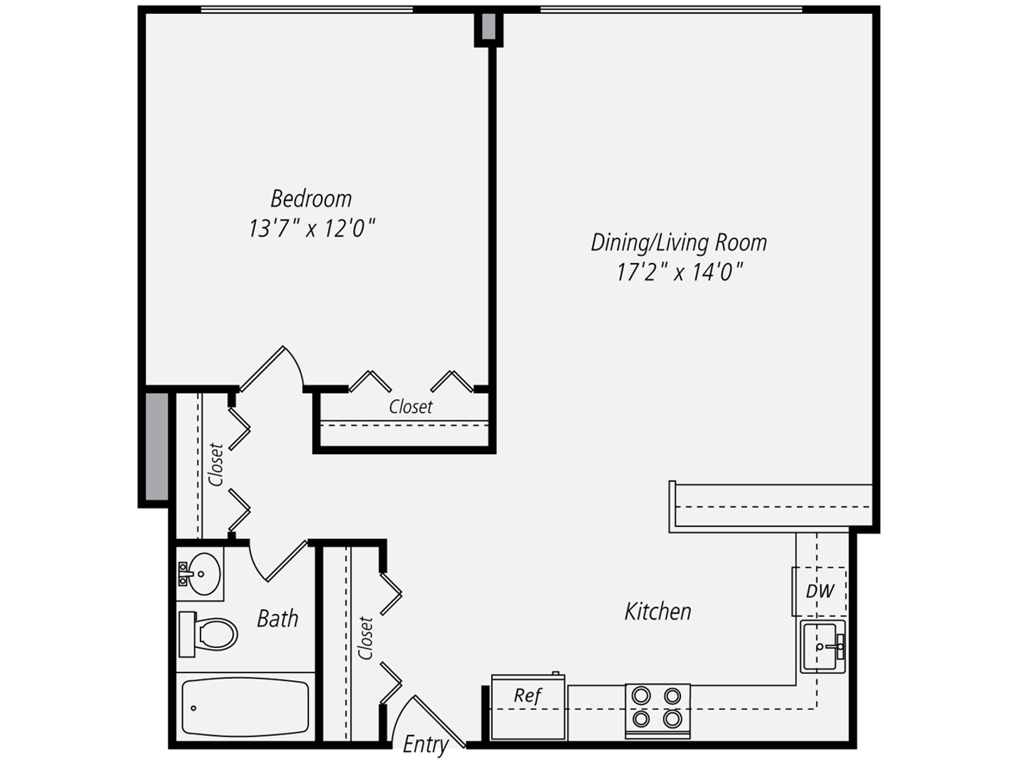 1x1-665 SF Renovated