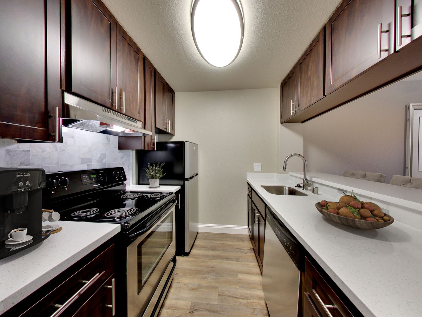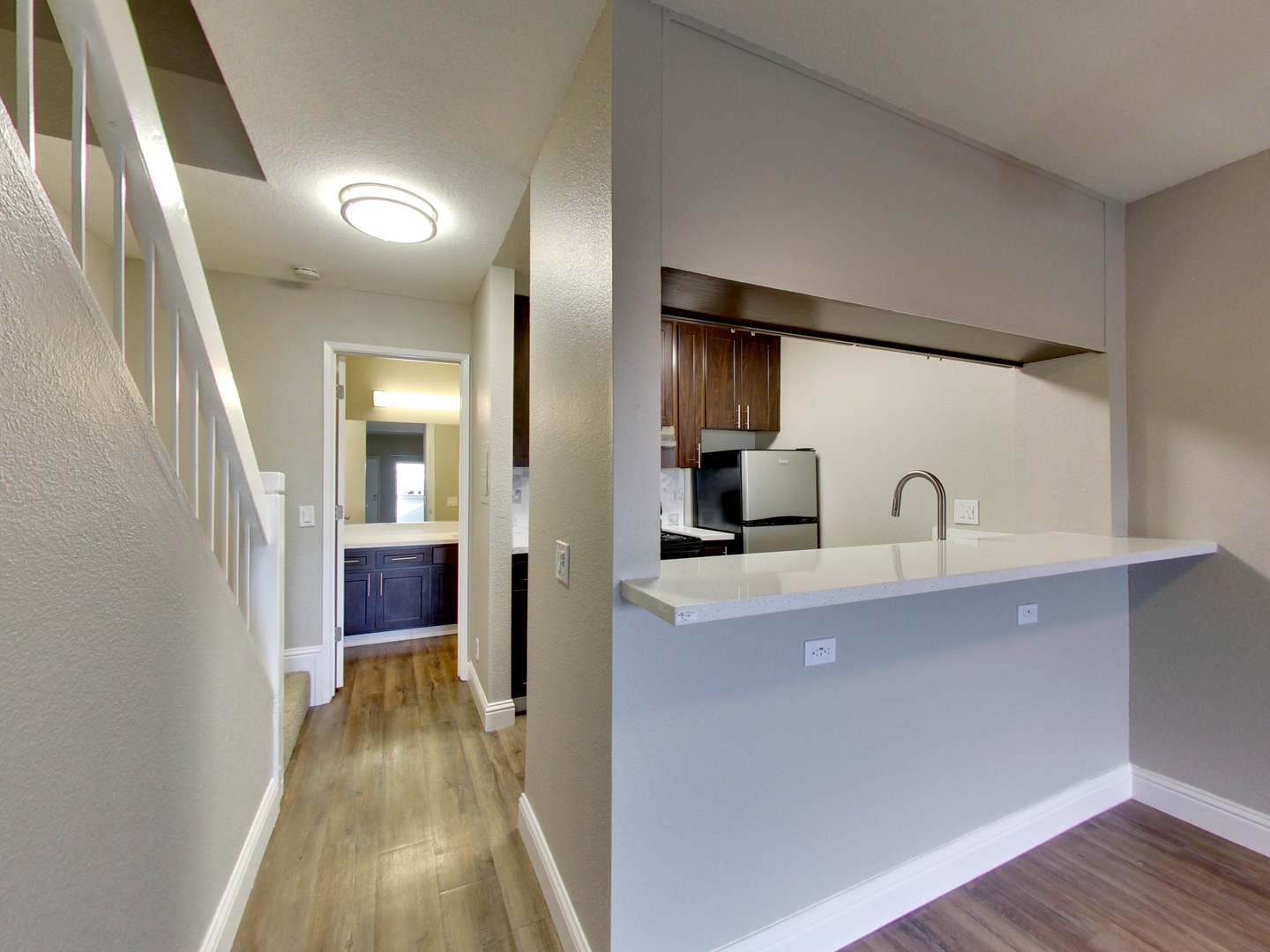 Come home to The Timbers Apartments in Hayward, California’s Jackon Triangle neighborhood. Our 1 Bed and 1 Bathroom floor plan comes complete with everything you need to feel right at home. Our floor plans feature vaulted ceilings, a private patio or balcony, stainless steel appliances, and a breakfast bar. Here, you can discover the ideal combination of personal and community amenities, including a fitness center, laundry facility, Amazon package lockers, and more! Our freshly renovated interiors include designer touches such as hardwood flooring, two-tone paint, large windows, and a modern kitchen. In our neighborhood, you'll find close access to the world at your fingertips. Our community is close to Chabot College and St. Rose Hospital, and our proximity to I-880 and SR 92 makes it very easy to get around. Discover better living at your fingertips and come home to The Timbers in Hayward, CA today.
